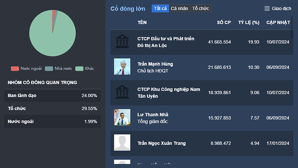 - Tính tới hết quý 3/2024, tỷ lệ sở hữu của ban lãnh đạo, tổ chức và nước ngoài lần lượt là 24%, 29.55% và 1.99%. Tỷ lệ free float của SIP hiện tại là 44.46%, có thể nói là cũng khá cô đặc.