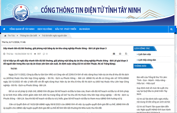 - Trong đó, tiền tạm ứng đền bù, giải phóng mặt bằng cho khu công nghiệp Phước Đông Bời Lời - Giai đoạn 3 tăng mạnh lên 2073 tỷ đồng. Tính đến quý 3/2024 80% các khu công nghiệp đã hoàn tất giải phóng mặt bằng.