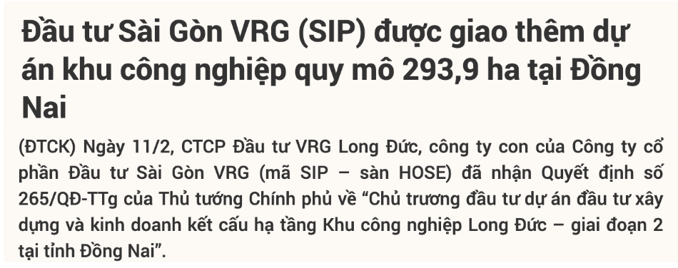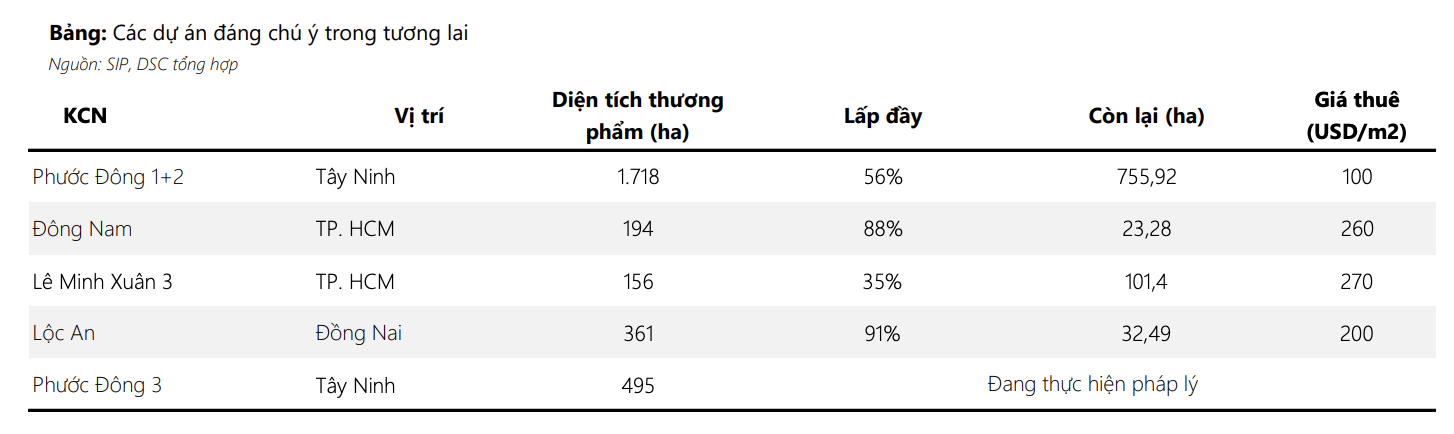 SIP sở hữu diện tích đất thương phẩm còn lại đứng trong top các doanh nghiệp niêm yết (ghi nhận tại cuối năm 2024 khoảng 960 ha, chủ yếu tại Tây Ninh, TP.HCM và Đồng Nai).