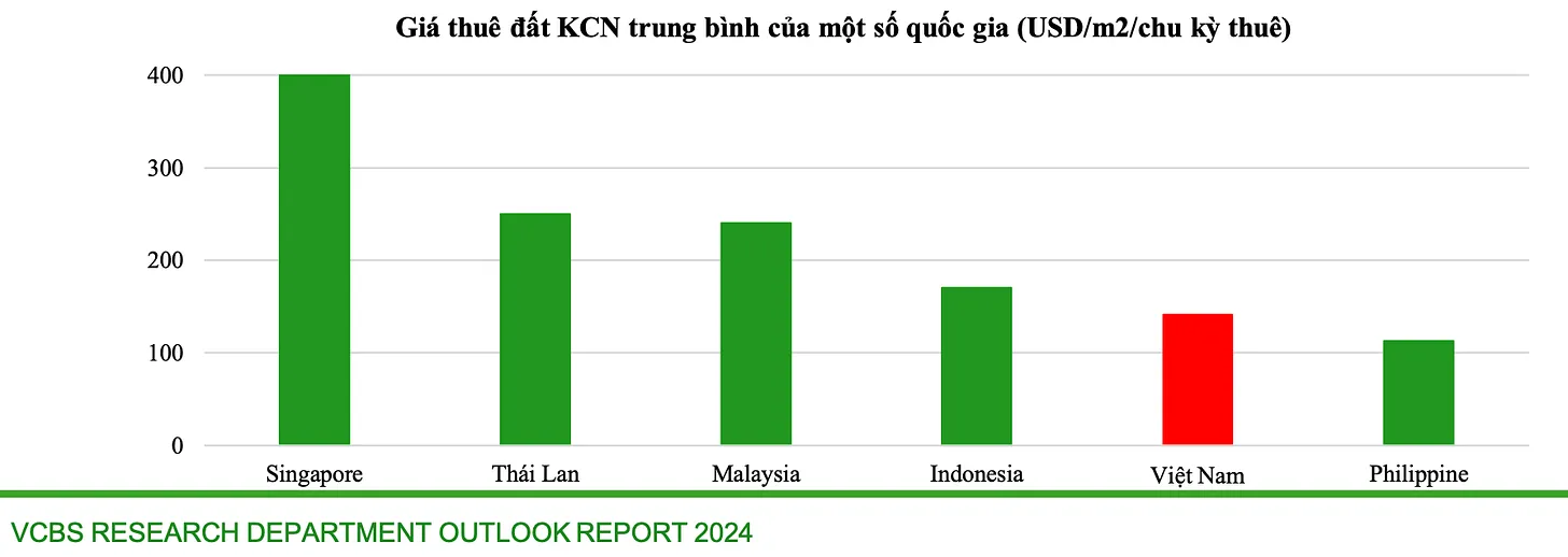 ⇒ Ưu tiên KCN có diện tích thương phẩm sẵn để cho thuê vì lợi thế về giá.