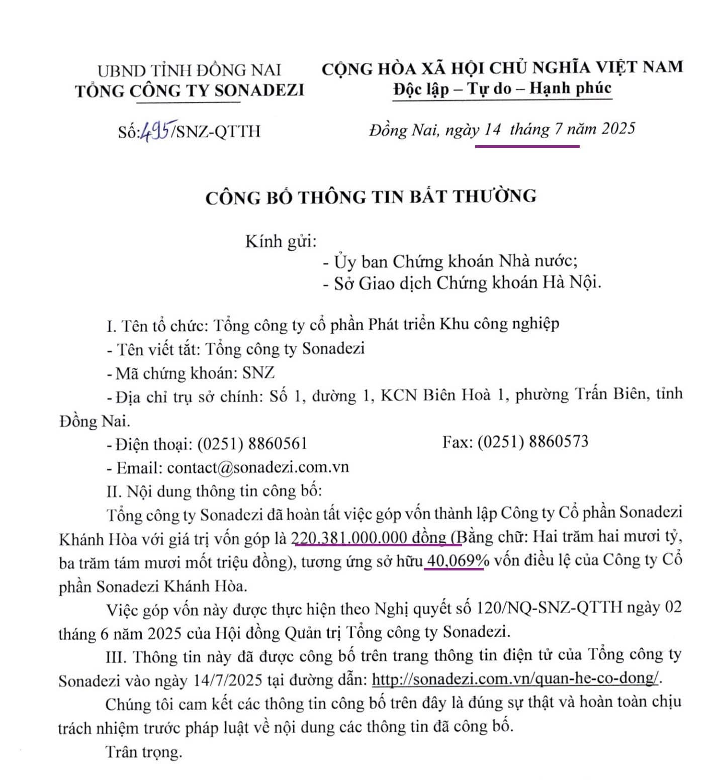 Ngày 05/6/2025,Sonadezi Bình Thuận tròn 5 năm thành lập và chuẩn bị khánh thành KCN Tân Đức trong năm 2025.