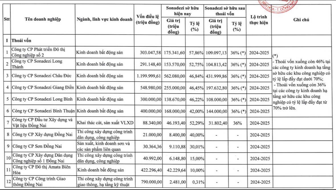 Trong năm 2025, Sonadezi dự kiến nghiên cứu, đề xuất một số dự án mới gồm 3 khu công nghiệp, 1 khu đô thị và 1 sân golf tại Đồng Nai. Tại Khánh Hòa, doanh nghiệp đang thực hiện các thủ tục thành lập CTCP Sonadezi Khánh Hòa để đầu tư, xây dựng và vận hành khu công nghiệp Ninh Diêm 3.