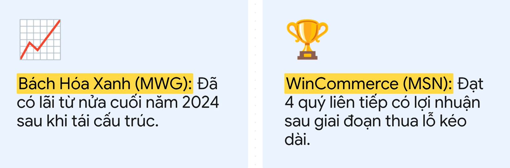 Thị trường bán lẻ thực phẩm và hàng tiêu dùng tại Việt Nam đang chứng kiến một giai đoạn cạnh tranh mang tính bước ngoặt. Sau nhiều năm đầu tư và chấp nhận thua lỗ để xây dựng nền tảng, hai “ông lớn” của ngành là Bách Hóa Xanh (BHX), thuộc Thế Giới Di Động, và WinCommerce (WCM), thuộc Masan, đã cùng đạt được một cột mốc quan trọng: chính thức kinh doanh có lãi kể từ nửa cuối năm 2024.