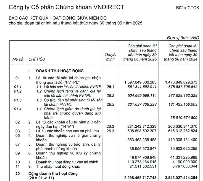 Bảng BCTC của CTCP chứng khoán VNDIRECT (nguồn: VNDIRECT)