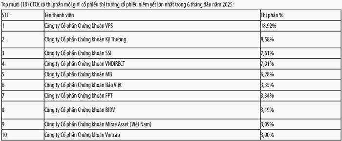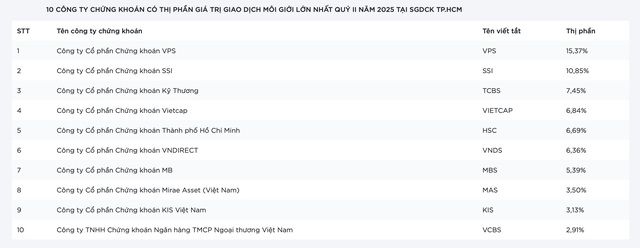 Top 10 CTCK có thị phần môi giới lớn nhất HOSE quý 2/2025 (nguồn: HSX)