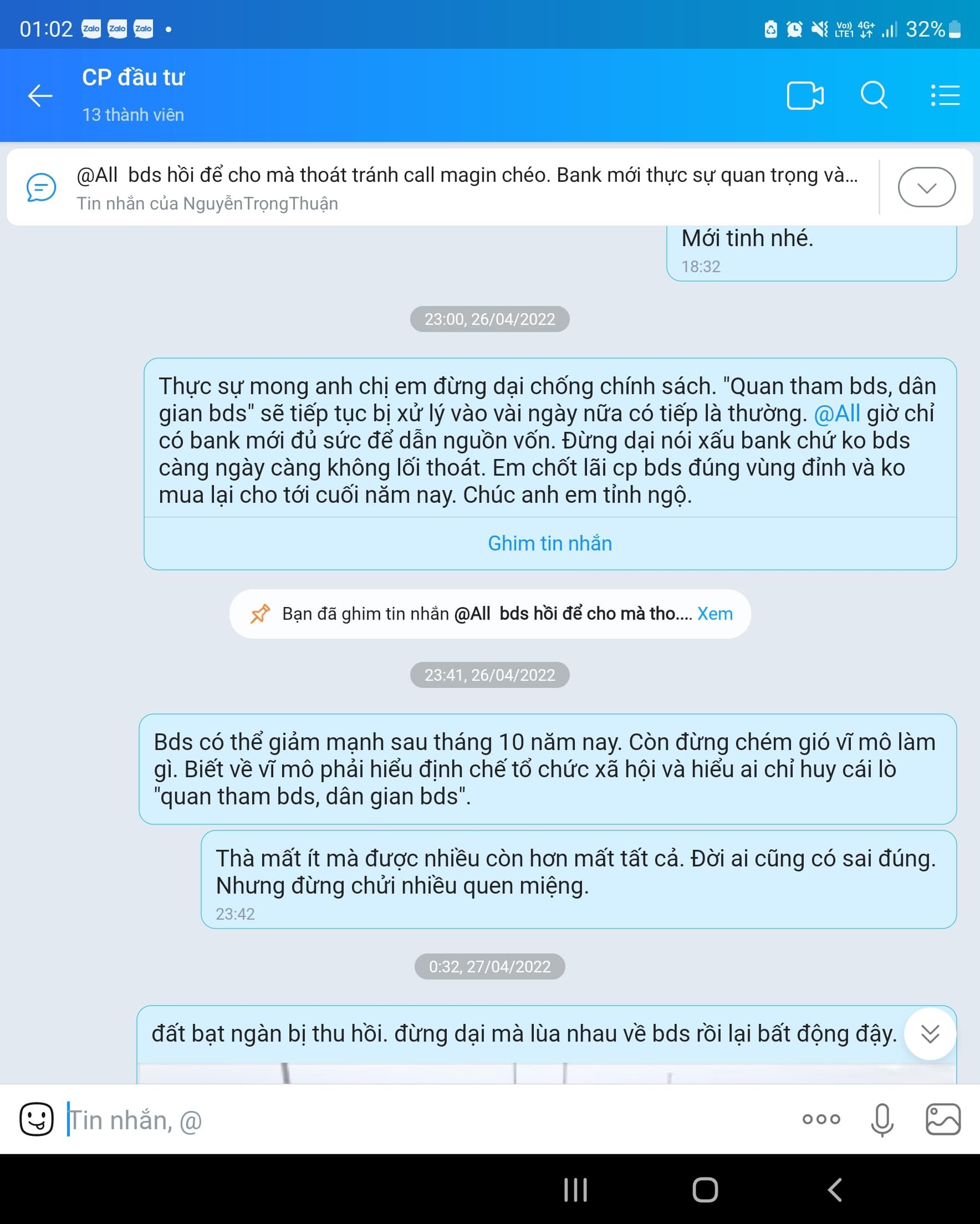 Thế nhé, đầu tư không phải 1 ngày, cứ sau 1 năm xem lại nhé. Quan điểm nó rõ cứ sau 1 năm nói chuyện tiếp về bds và bank.