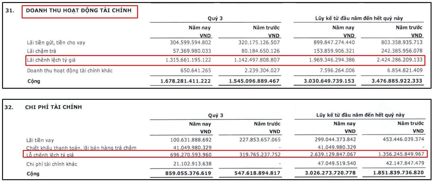 -Trong khoản mục doanh thu tài chính, VGI ghi nhận lãi chênh lệch tỷ giá lên tới 1,316 tỷ đồng. Tuy nhiên trong phần chi phí tài chính, VGI ghi nhận lỗ tỷ giá 689 tỷ đồng.