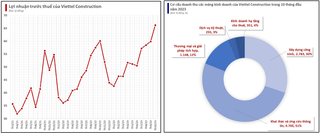 Về kết quả, Lợi nhuận trước thuế đạt 66.2 tỷ đồng, tương ứng tăng gần 11% so với tháng 9/2022 và là mức lợi nhuận theo tháng cao nhất trong lịch sử hoạt động của Viettel Construction.