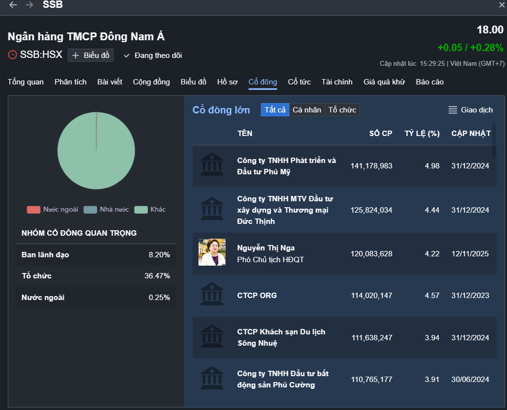SSB hiện nay có tỷ lệ sở hữu thế nào? SSB là ngân hàng nằm trong nhóm VN30 từ 2023 mỗi ngày đang giao dịch ~ 2.3 triệu CP.