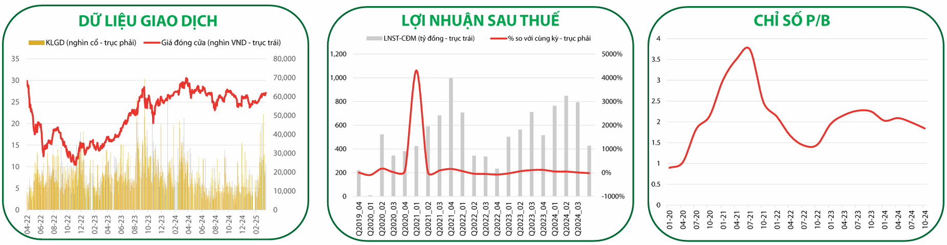 Năm 2024, SSI ghi nhận doanh thu hoạt động đạt 8.529 tỷ đồng, tăng 19% so với năm 2023; lợi nhuận trước thuế đạt 3.543 tỷ đồng, tăng 24% so với cùng kỳ – thiết lập mức kỷ lục mới.Tăng trưởng doanh thu năm 2024 chủ yếu đến từ mảng cho vay và phải thu, đạt 2.079 tỷ đồng (+32%), phản ánh sự phục hồi mạnh mẽ của hoạt động margin khi dư nợ cho vay ký quỹ tăng từ 14.672 tỷ lên 21.815 tỷ đồng, cao nhất kể từ cuối năm 2021. Ngoài ra, mảng lãi từ tài sản tài chính ghi nhận qua lãi/lỗ (FVTPL) tiếp tục đóng vai trò quan trọng với mức đóng góp 4.022 tỷ đồng, tăng hơn 27% YoY, nhờ thị trường diễn biến thuận lợi giúp SSI cải thiện hiệu quả đầu tư tự doanh. Một điểm sáng khác là mảng môi giới chứng khoán, đạt doanh thu 1.667 tỷ đồng, tăng 11% so với năm trước, phản ánh mức độ hồi phục nhất định của thanh khoản thị trường trong năm 2024.