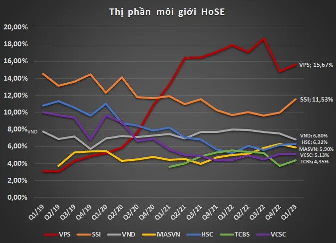 Trong đó SSI là lá cờ đầu cho sự tăng trưởng của ngành. Lợi nhuận sau thuế của SSI đạt 503 tỷ đồng, tăng 115 tỷ đồng so với Quý 4/2022;