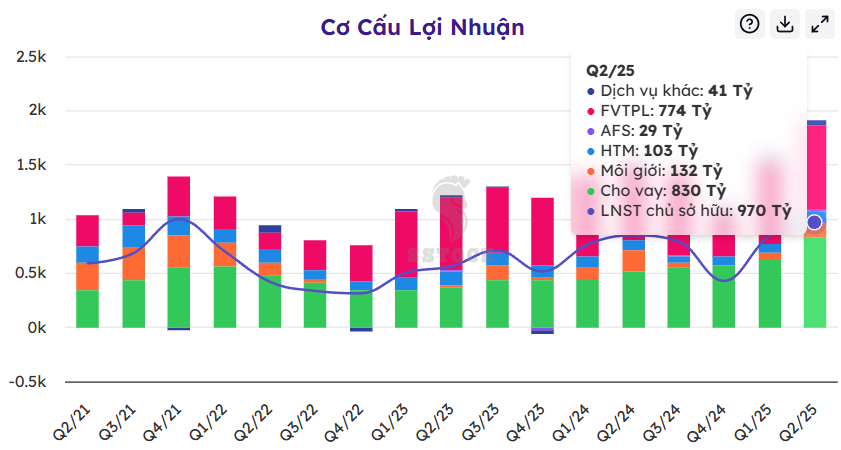 Kết quả kinh doanh 6 tháng đầu năm 2025 của SSI tiếp tục khả quan: lợi nhuận trước thuế đạt 2.300 tỷ đồng (+12,1% YoY), doanh thu đạt 5.200 tỷ đồng (+20,4% YoY).