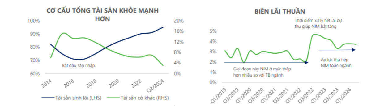 Tính đến cuối quý 2/2024, tổng tài sản của STB đạt 717 nghìn tỷ đồng, tăng 6% so với đầu năm 2024 và tăng 3% so với quý 1/2024. Đặc biệt, tài sản sinh lãi – bao gồm các khoản cho vay, đầu tư, và tài sản sinh lời khác – đã tăng trưởng vượt trội, với mức tăng 11% so với đầu năm và 6% so với quý trước. Sự gia tăng này đã đưa tỷ trọng tài sản sinh lãi trên tổng tài sản của ngân hàng lên mức 95%, cao nhất từ trước đến nay kể từ khi STB bắt đầu quá trình tái cơ cấu.