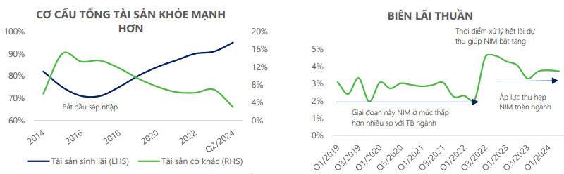 Tính đến cuối quý 2/2024, tổng tài sản của STB đạt 717 nghìn tỷ đồng, tăng 6% so với đầu năm 2024 và tăng 3% so với quý 1/2024. Đặc biệt, tài sản sinh lãi – bao gồm các khoản cho vay, đầu tư, và tài sản sinh lời khác – đã tăng trưởng vượt trội, với mức tăng 11% so với đầu năm và 6% so với quý trước. Sự gia tăng này đã đưa tỷ trọng tài sản sinh lãi trên tổng tài sản của ngân hàng lên mức 95%, cao nhất từ trước đến nay kể từ khi STB bắt đầu quá trình tái cơ cấu.