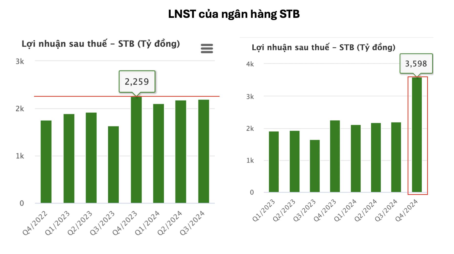 Lợi nhuận trước thuế Quý 4/2024 của STB đạt hơn 4.600 tỷ đồng, tăng 68% so với cùng kỳ năm trước.