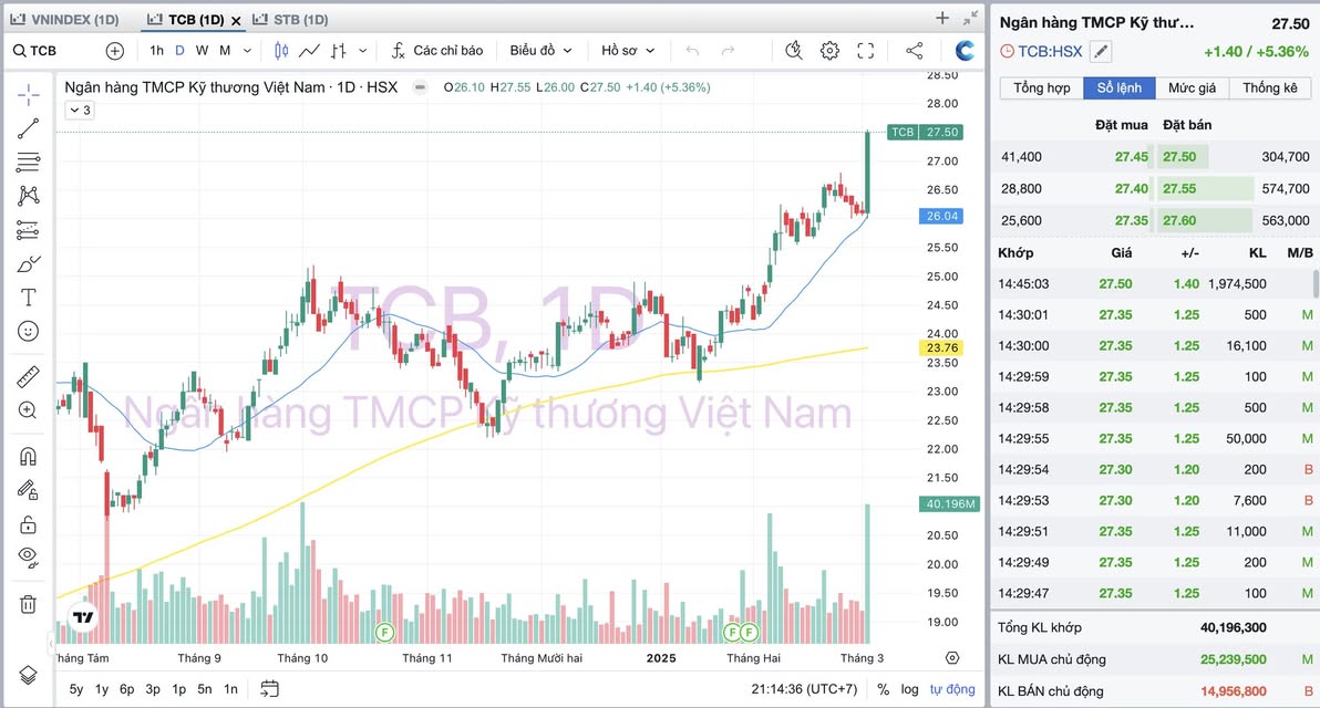 Hôm nay, thị trường chứng kiến cú bứt phá mạnh mẽ của TCB, mở ra kỳ vọng về một làn sóng tăng trưởng mới trong nhóm cổ phiếu ngân hàng. Trong bối cảnh đó, STB được đánh giá là ứng viên tiềm năng tiếp theo có thể “nổ” sau TCB, nhờ vào nền tảng tài chính vững chắc, quá trình tái cơ cấu đã hoàn tất và động lực tăng trưởng mạnh mẽ trong năm 2025.