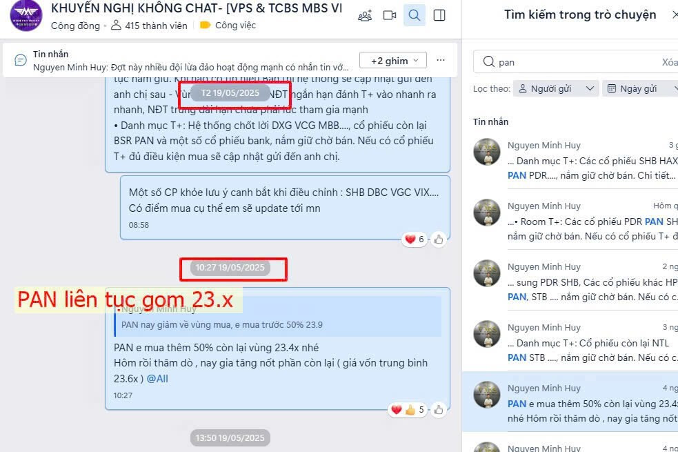 Danh mục hôm nay: PAN, VSC, VIX, EIB 4 mã tím cứng