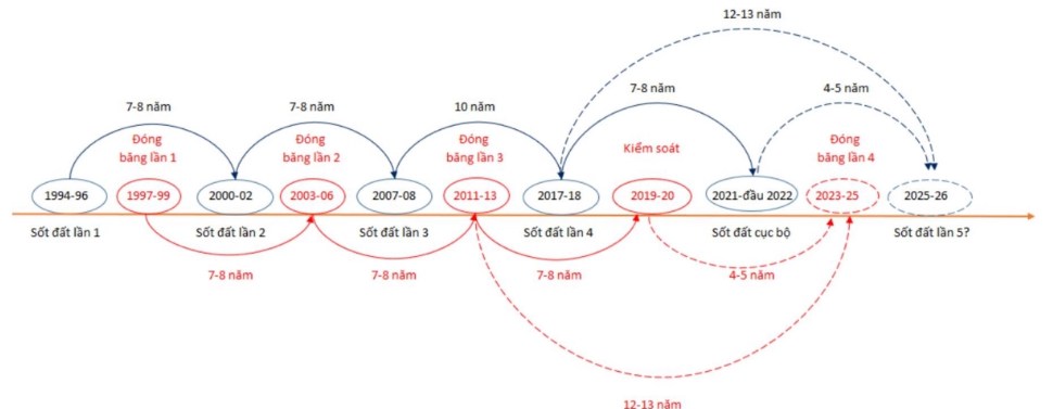 Thống kê theo tính chu kỳ của ngành BĐS. thì cơn sốt đất lần thứ 5 được dự đoán sẽ rơi vào giai đoạn 2025 - 2026.