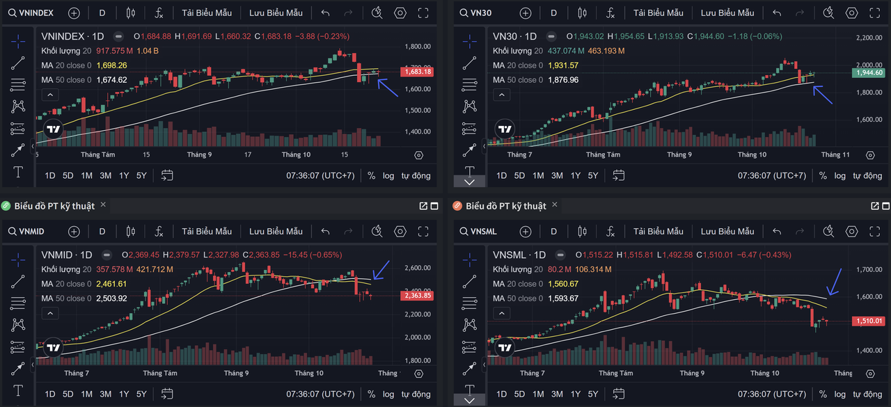 MIDCAP và SMALLCAP hồi yếu, chưa lấy lại vùng tích lũy trước đó.