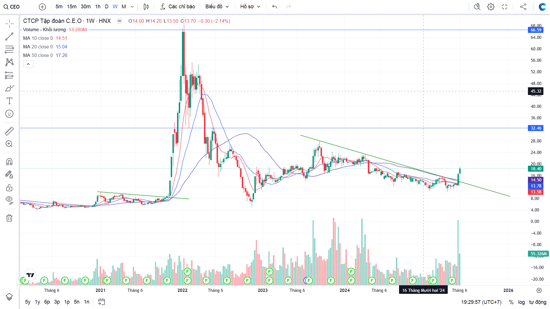 Tôi chọn Ceo thay vì DIG có nhiều lý do. Về chart Ceo đã phá trend giảm tuần sau một thời gian dài đi ngang và giảm. Thêm nữa tây quay lại mua kl lớn + nổ vol.