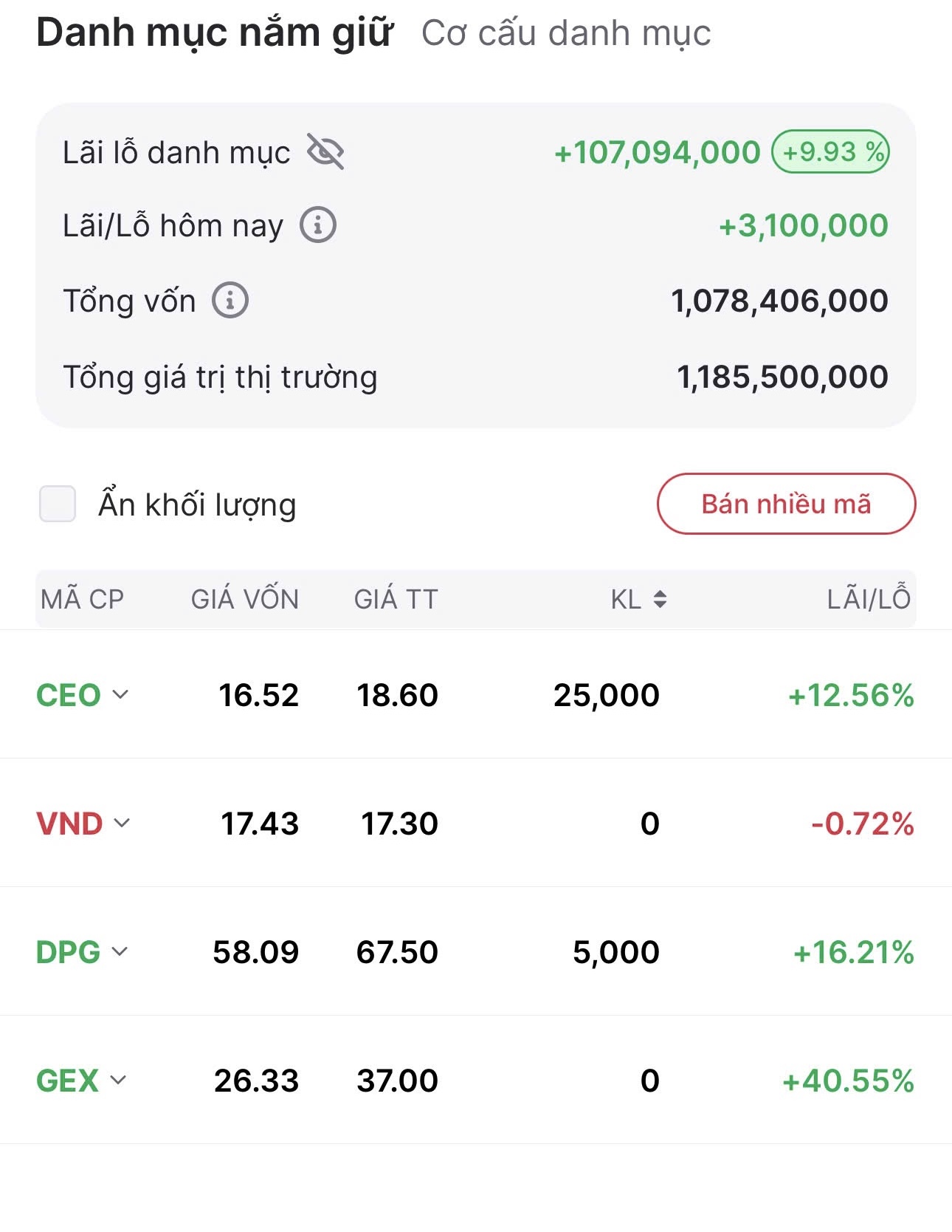 Hôm nay thi trường đỏ mà tk vẫn xanh đó mới là kinh nghiệm thực chiến. Còn broker toàn ■■■ hô 10 con lãi 1 con nói em đã bảo anh chị rồi.