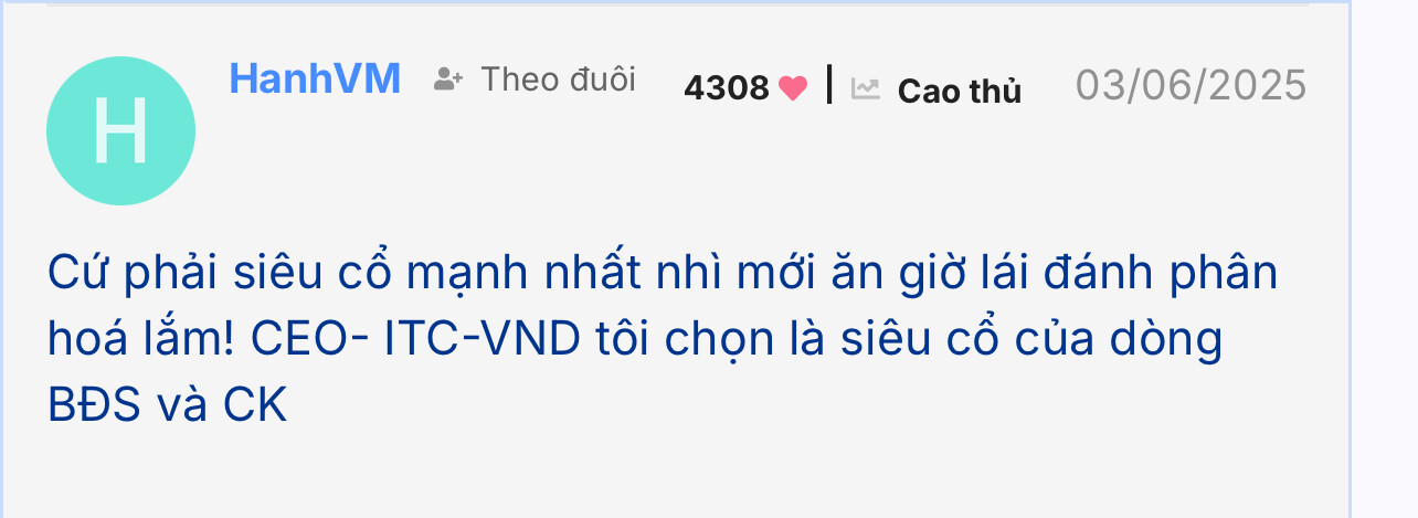 VND chưa có vị gì đâu bác chủ Pic. CEO thì tín hiệu té 19 từ hôm qua rồi! Hôm qua té CEO sang múc sàn ITC tẹt bô cho nó phê!