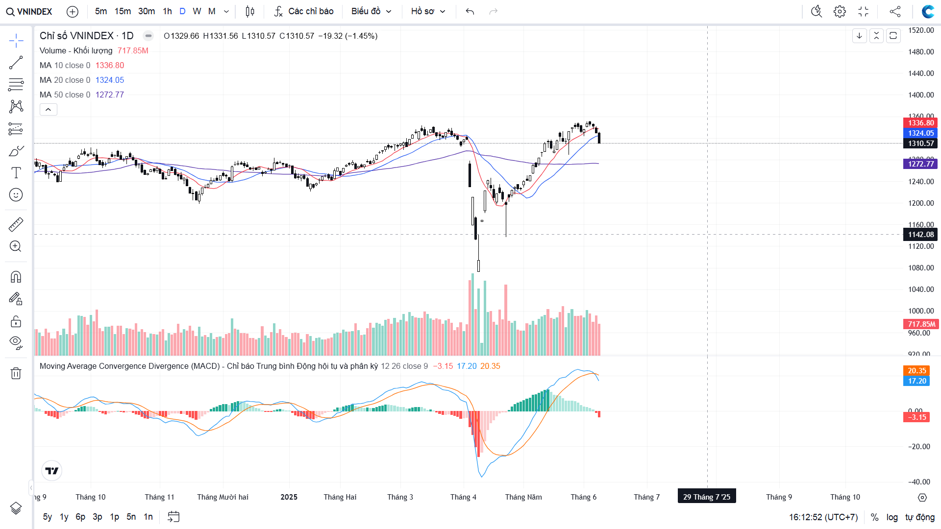 Nếu ngày mai thi trường tiếp tục suy yếu và không thể giữ mốc 1300 thì có thể tt sẽ điều chỉnh ngắn hạn về 127x. Đây cũng là cơ hội cho ae nào chưa có hàng BĐS thì nên giải ngân dần là vừa. Thị trường giảm mạnh hôm nay chủ yếu do cổ nhà Vin lăn ra sàn thôi chứ về cơ bản chưa thấy sự phân phối tại đây, có thể đây sẽ là nhịp giảm để lấy sức bật qua vùng cản 135x. Hi vọng ngày mai TT sẽ được trả điểm.
