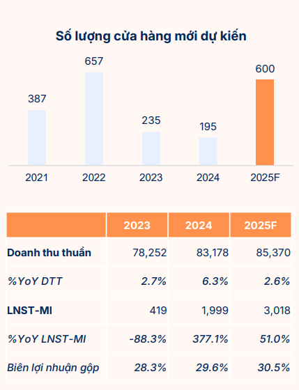 - WCM chuyển từ gánh nặng sang động lực khi đạt điểm hòa vốn. WinCommerce dự kiến hòa vốn cả năm 2025, duy trì mở rộng 150 cửa hàng/quý. Sự cải thiện trong quản trị vận hành, logistics và thương mại điện tử tích hợp đang hỗ trợ đà tăng trưởng doanh thu trên mỗi cửa hàng.
