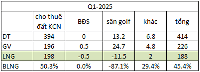 Ngoài mảng KCN thì trong Q1-2025 gần như không có đóng góp từ các mảng khác. Mảng BĐS hoàn toàn không ghi nhận doanh thu trong Q1. Các mảng khác như cung cấp điện nước, dịch vụ cho KCN hay cho thuê nhà xưởng mang lại lợi nhuận không lớn và cũng chưa đủ bù lỗ cho hoạt động kinh doanh sân golf, nhà hàng. (Hình 3)
