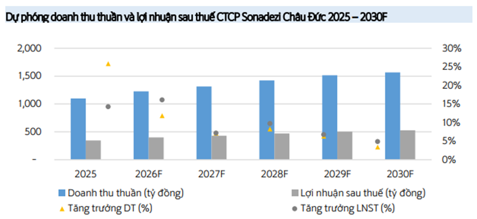 Với triển vọng dự án sân bay Long Thành hoàn thành trước tháng 06/2026, kỳ vọng hoạt động cho thuê đất KCN và kinh doanh bất động sản dân dụng của SZC sẽ gia tăng sự thu hút. Qua đó, diện tích cho thuê đất KCN vẫn duy trì ổn định đạt 45 ha, bất chấp những biến động toàn cầu. Doanh thu từ mảng bất động sản dân dụng được kỳ vọng sẽ tăng trưởng nhờ lượng hàng tồn kho từ dự án Sonadezi Hữu Phước tiếp tục được chuyển sang năm 2026 đi cùng với việc mở bán 105 căn và cho thuê 105 Nhà ở xã hội.
