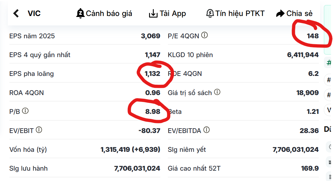 Chỉ là nhanh hay chậm, sớm hay muộn, VIC rồi cũng giống ROS năm xưa, khi giá cổ phiếu không đi đôi với lợi nhuận doanh nghiệp thì sớm muộn nó cũng về đúng nơi nó xuất phát. Ai vào sớm thì có ăn, ai vào tầm này lại đi đổ bô cho người khác. Điều quan trọng nhất trên thị trường chứng khoán là phải SỐNG SÓT trước, muốn sống sót thì phải có kỉ luật, đó là lí do vì sao 90% chứng sĩ phơi xác ở cái sòng này. Thị trường kéo điểm số mà dòng tiền không vào thì sụp chỉ là vấn đề thời gian, việc phân kì giữa giá và vol cực kì nguy hiểm. Các công ty chứng khoán đã cắt toàn bộ Margin của VIC là dấu hiệu của sự rạn nứt.