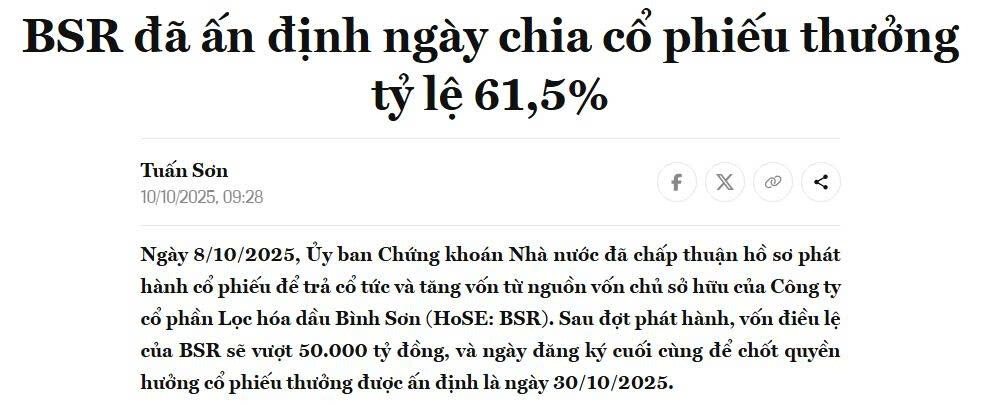 Hôm nay BSR tăng trần là do thị trường tự điều tiết, nhằm bù đắp chi phí cơ hội cho NĐT khi phải chịu thuế cổ tức 5% nếu lăn chốt