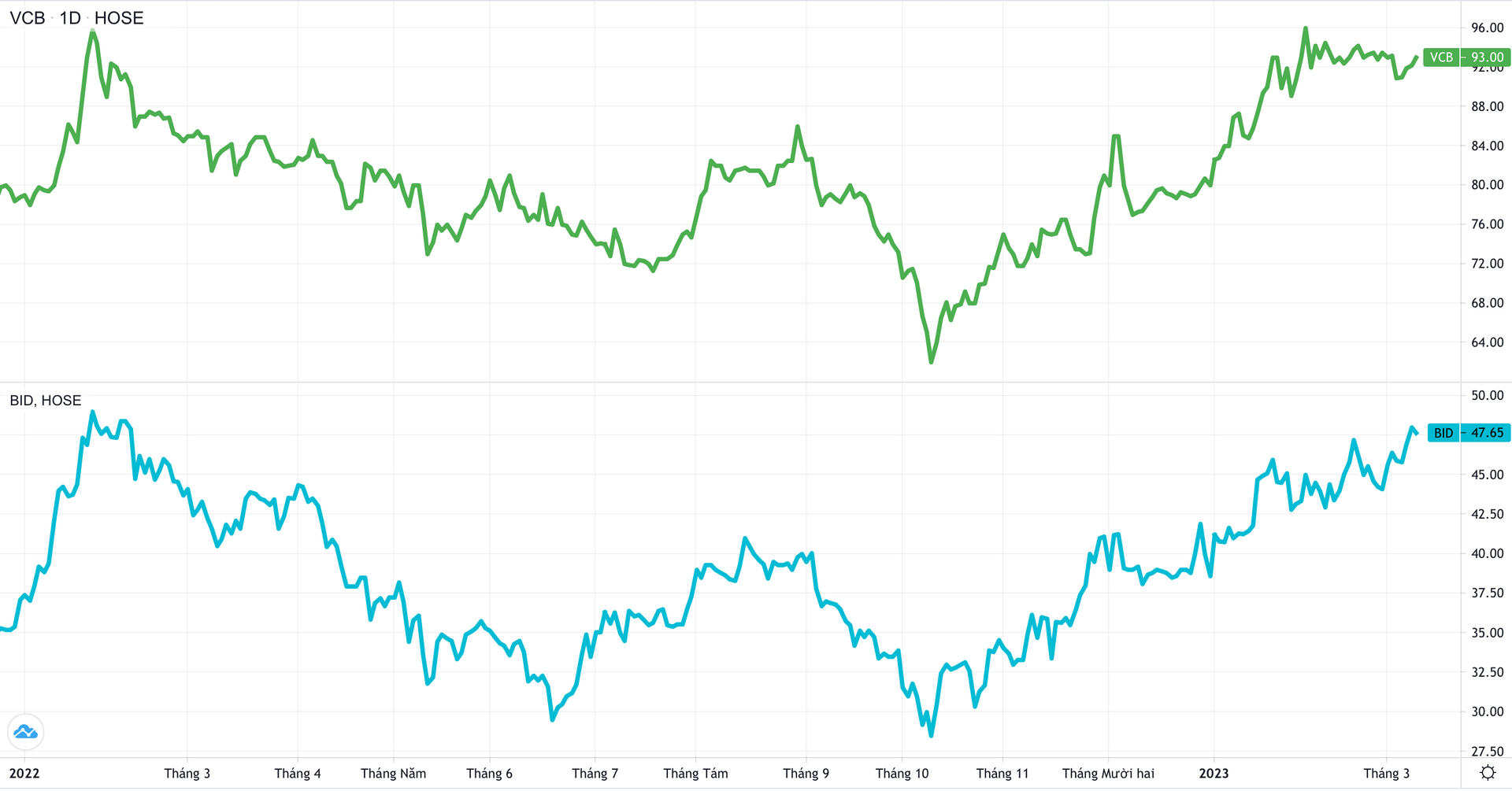 Năm 2022 trước đó là một năm hoạt động đầy khởi sắc của 2 nhà băng này. Trong đó, Vietcombank lãi trước thuế 37.358 tỷ đồng, tăng gần 36% so với năm trước. Lợi nhuận trước thuế của BIDV thậm chí còn tăng trưởng đến hơn 70% so với năm 2021, đạt gần 23.058 tỷ đồng.