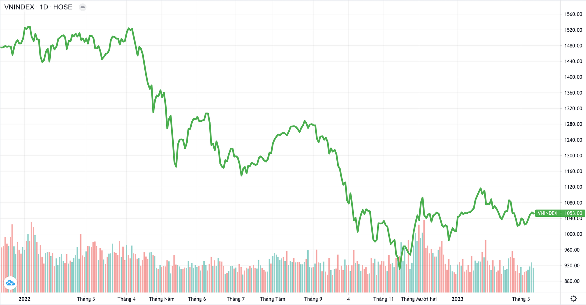 Sau nhịp hồi mạnh từ đáy, thị trường chứng khoán chịu áp lực chốt lời mạnh khi VN-Index trở lại vùng 1.100 điểm. Chỉ số đảo chiều giảm từ đầu tháng 2/2023 và có thời điểm đã lùi về sát mốc 1.000 trước khi hồi nhẹ. Hầu hết các cổ phiếu vẫn giảm rất sâu so với đỉnh, thậm chí còn miệt mài dò đáy. Dù vậy, vẫn có những cái tên âm thầm trở lại vùng đỉnh lịch sử.