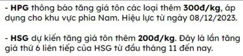 Do ngành thép đã trải qua đáy LN năm 2022, từ đó kết quả doanh thu từ HĐKD tăng trưởng đều đặn qua các quý => quý 4 sẽ tiếp tục ghi nhận tăng trưởng vượt bậc so với cùng kì