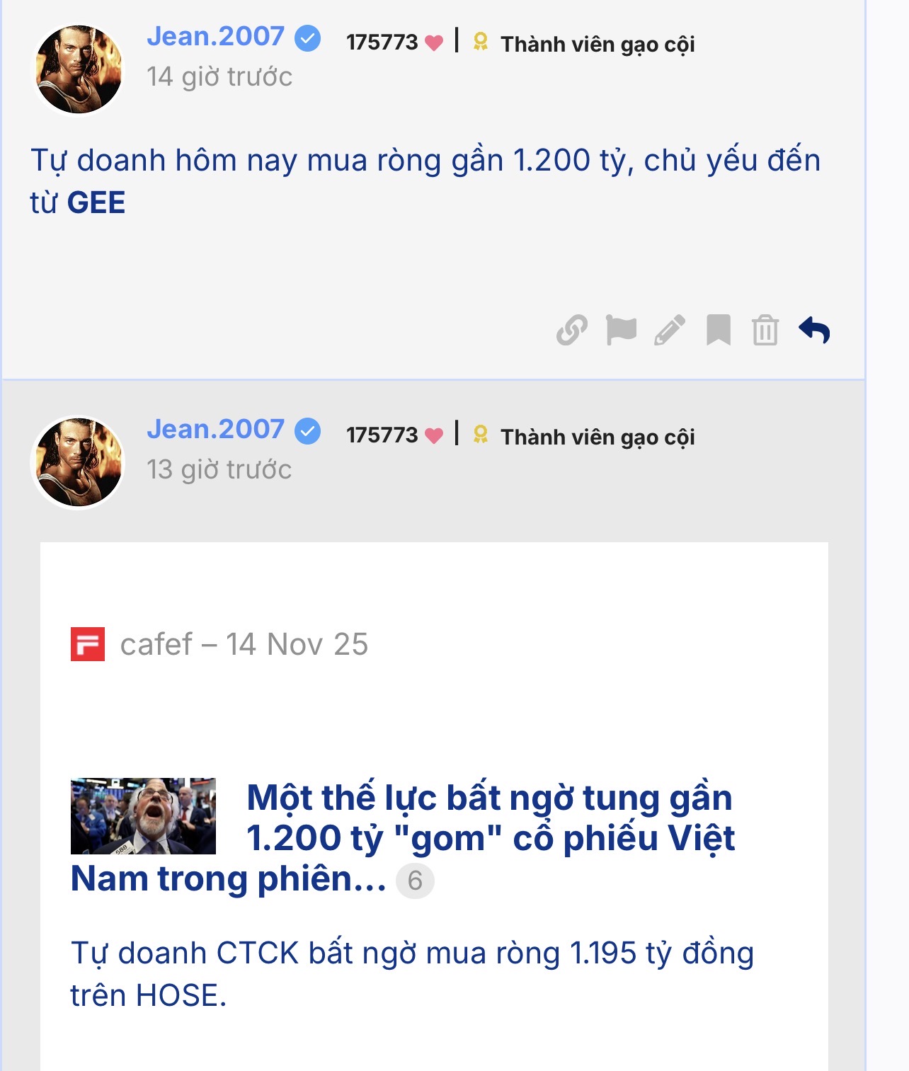 Tự doanh hôm nay mua ròng gần 1.200 tỷ, chủ yếu đến từ GEE