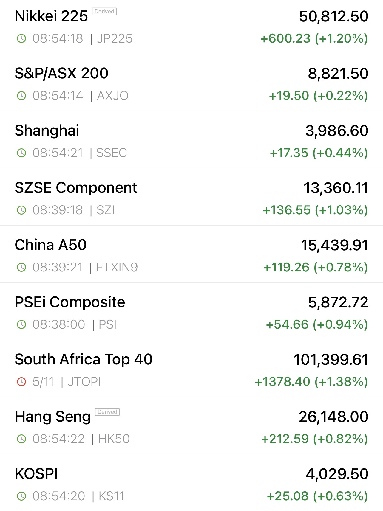 CK châu Á phiên sáng nay đang xanh ngát cả: