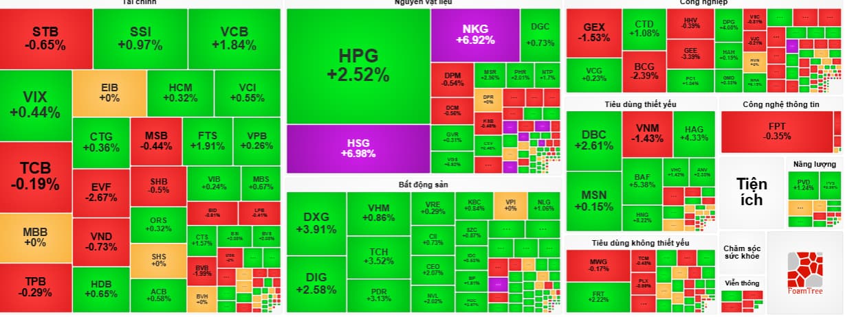 bank chứng thép thì VNI vượt 1500 thôi A
