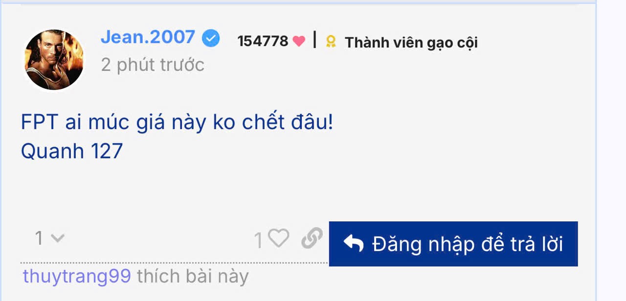 Mài hô múc FPT 127 giờ nó còn có 125 , XL riết quen vậy J stupid, tau chịu mài rồi, tốt nhất mài nên giải nghệ và khoá topic đi cho nhanh