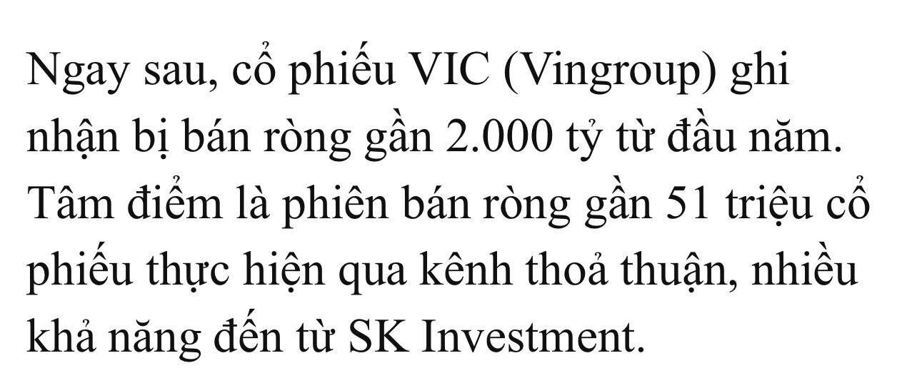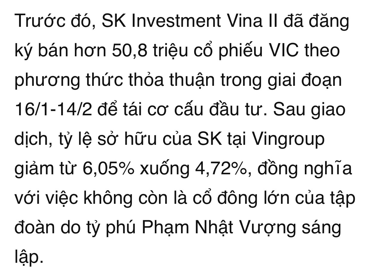 SK đã thoái toàn bộ 51 triệu cp VIC: