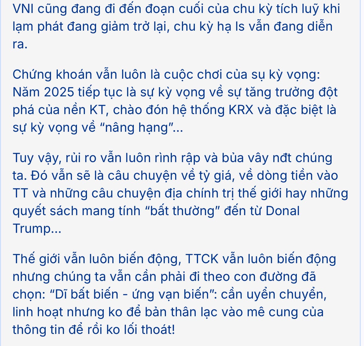 Nhưng trước mắt là mùa BCTC quý 1, mùa ĐHCĐ đầu năm và quan trọng hơn là game KRX trong tháng 5 và nâng hạng trong tháng 9…