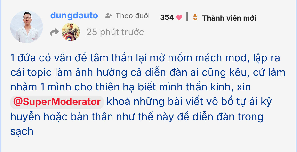 A lên xe rồi nhưng phải chửi m ày cái. Về mà lo thuốc thang đi chứ để nặng như thằng DuyvinhFC bên kia là cha m ẹ ■■■ mất đứa con khổ nhọc bao năm nuôi nấng đấy.