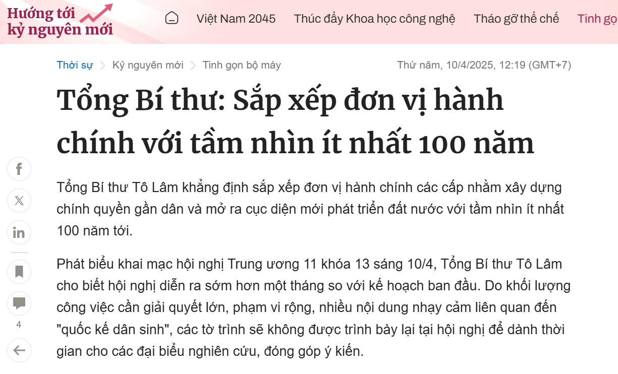 Tổng Bí thư: Sắp xếp đơn vị hành chính với tầm nhìn ít nhất 100 năm - Báo VnExpress