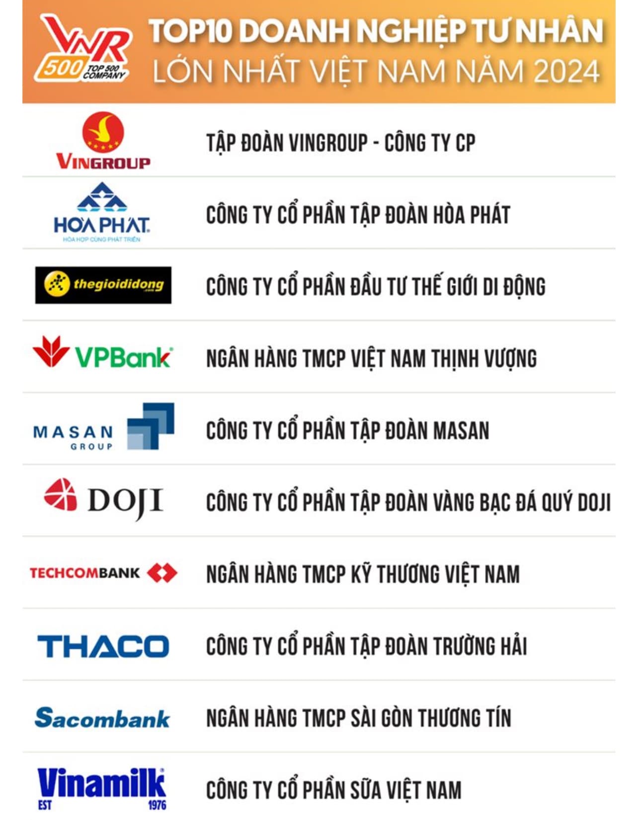 10 DN lớn nhất VN thì chắc chắn sẽ chọn VIC.