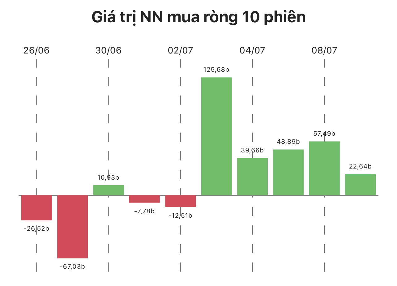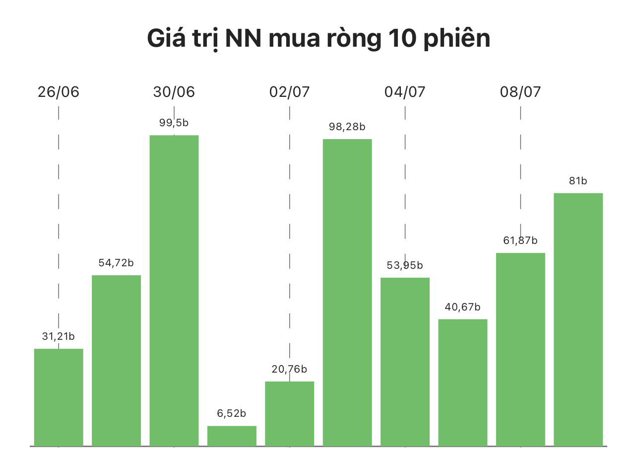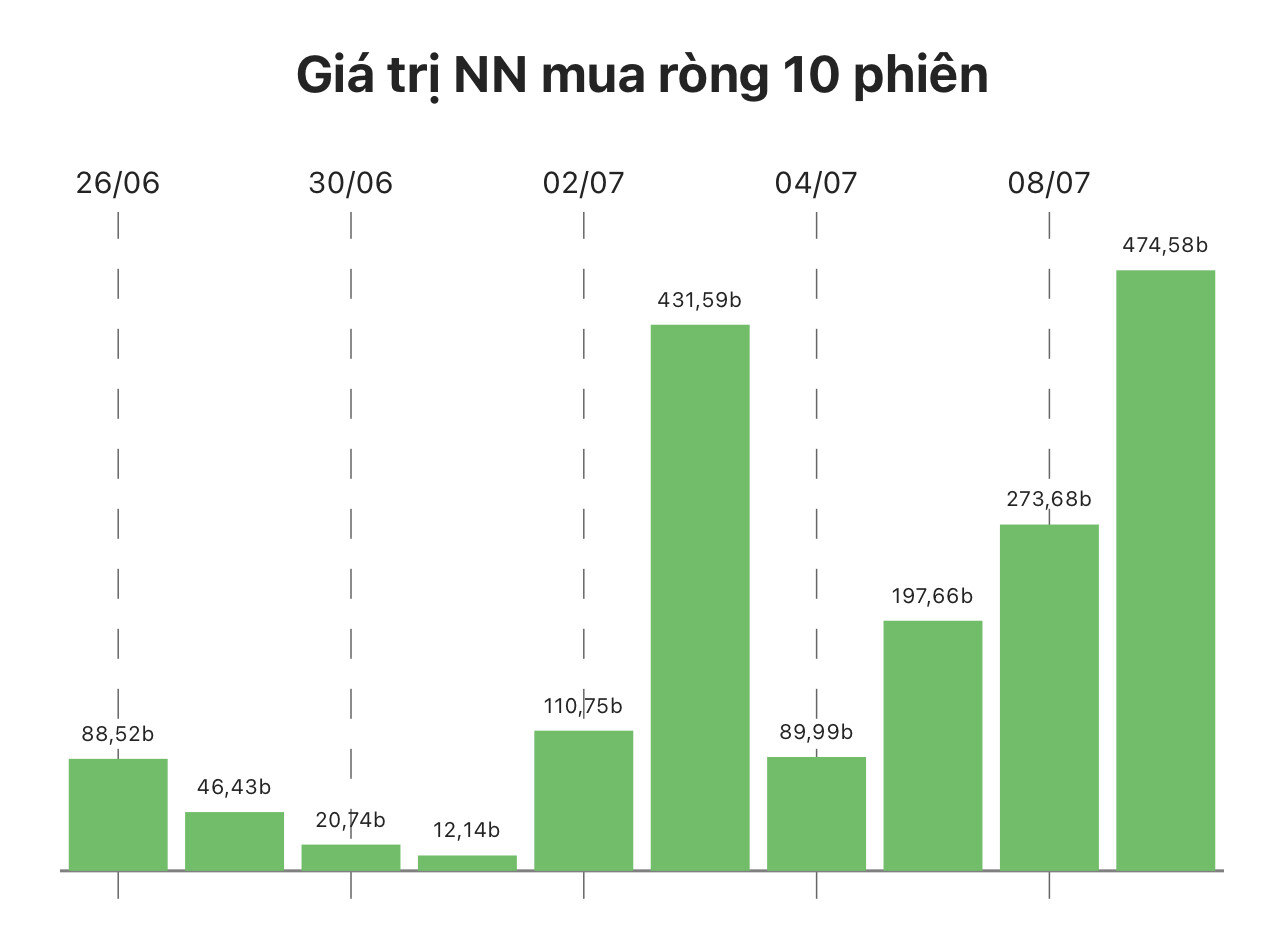 Đầu tháng 7 đến nay Mua ròng khoảng 10.500 tỷ.