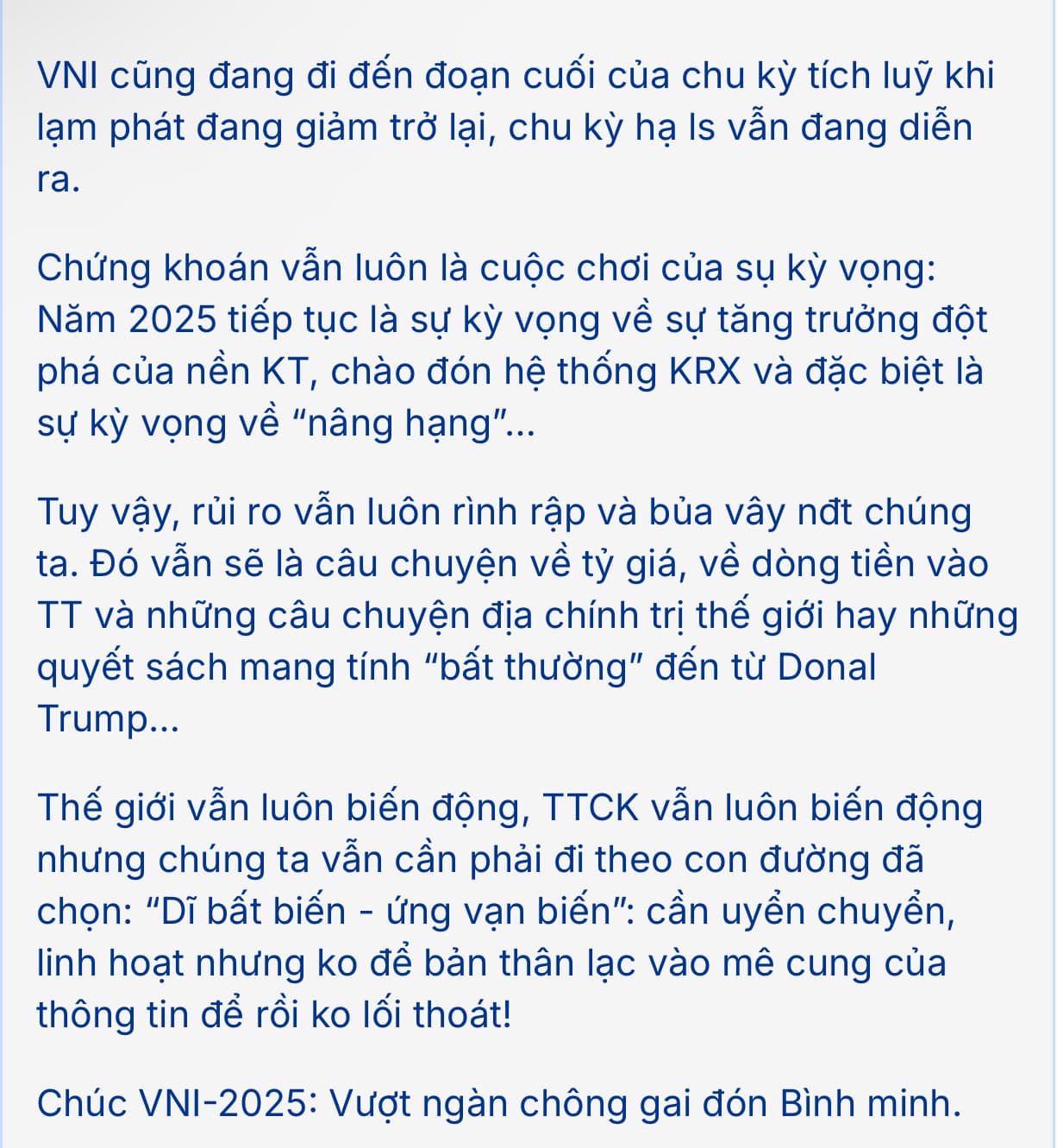Lưu ý VNI càng lên cao thì việc rung lắc sẽ thường xuyên xảy ra: