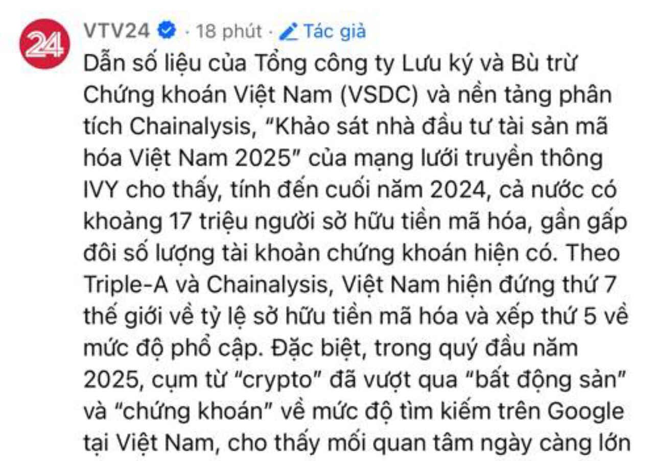 Khủng khiếp, nếu tin chuẩn thì TK Mã hoá tại VN đang cao gần gấp 2 lần TKCK.