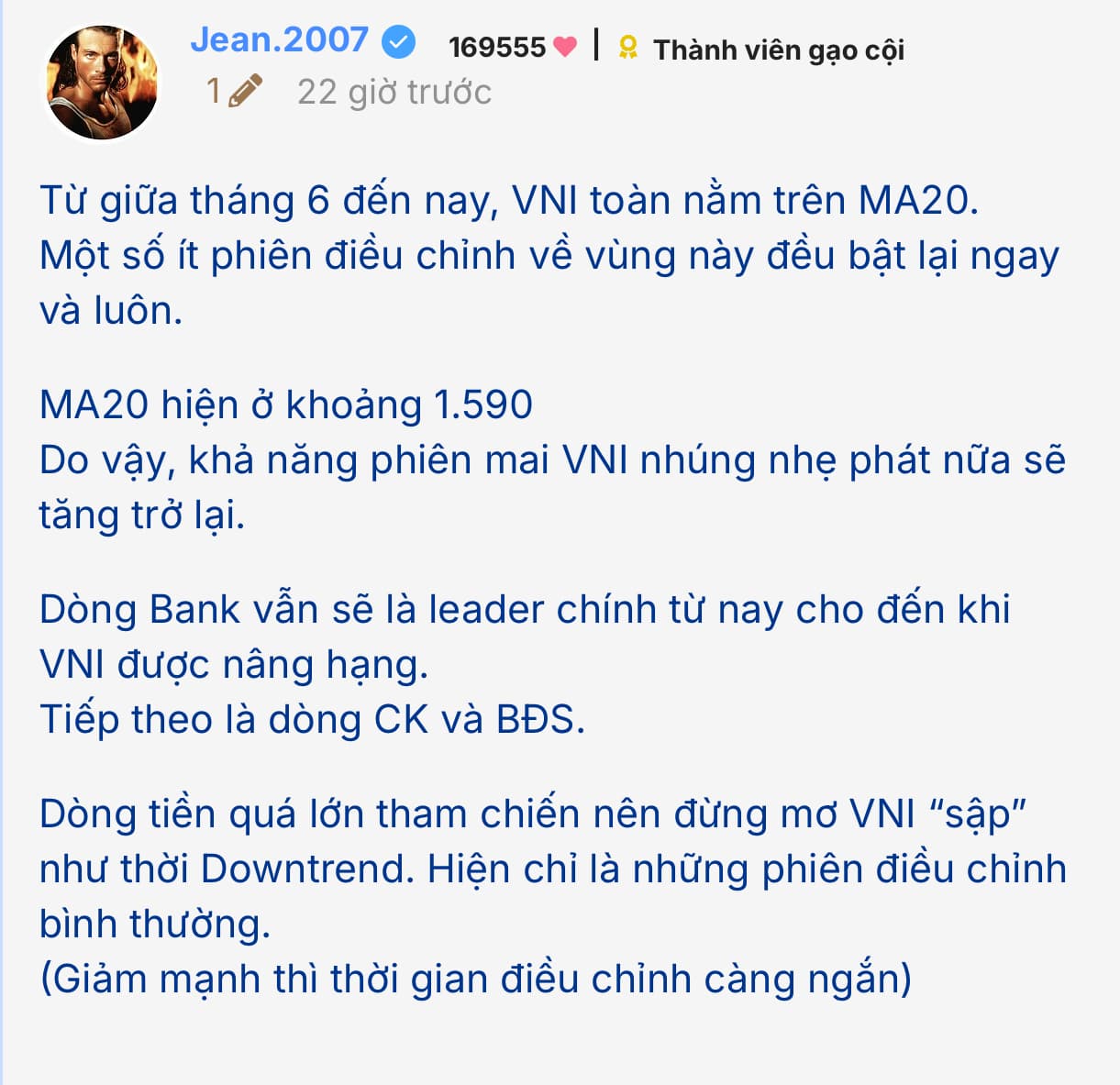 Nên khi xuống tàu thì VNI thiêu rụi 2 phiên, khi anh nhập cuộc thì VNI bùng nổ cho ăn tím luôn