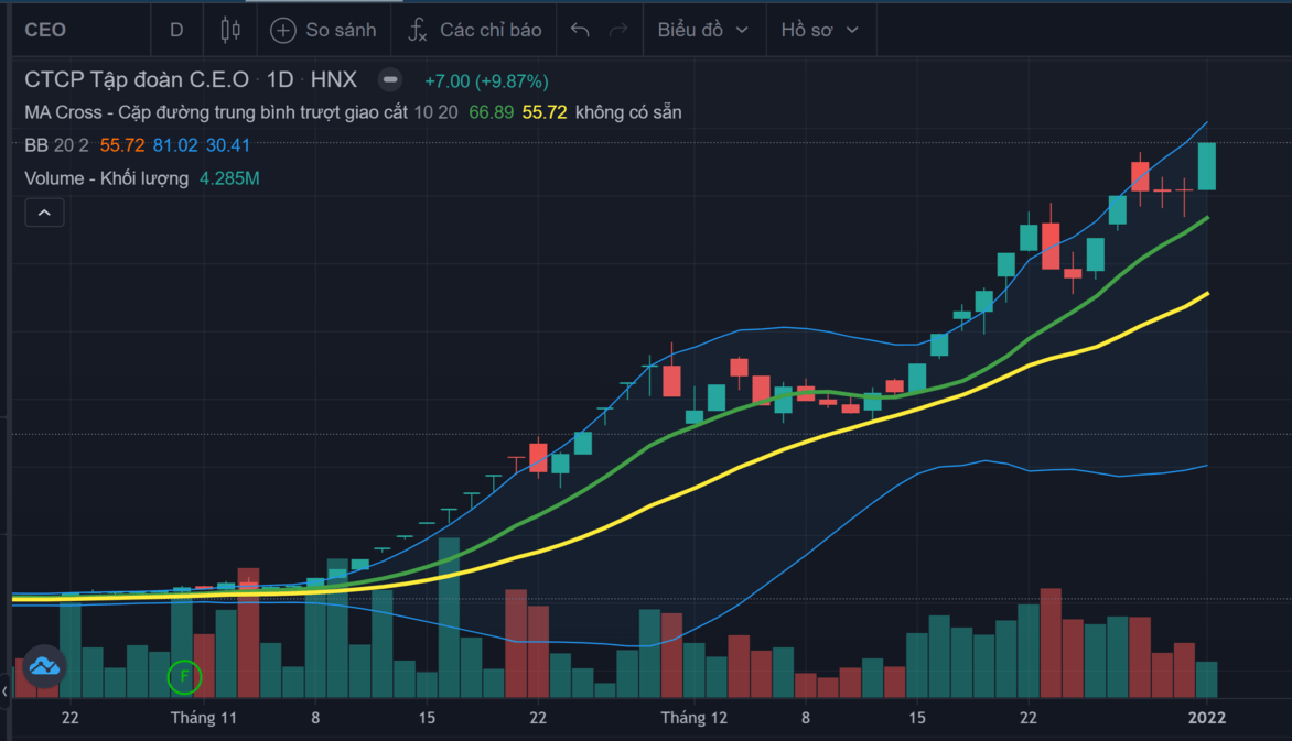 | CEO | 10,8-11,2 | 77,9 | 9,9% | 4,3 Tr | MUA | MUA | 56,8 | Ngang | Tăng | 80,6 | Có vẻ ý chí đội lái k muốn về lấp gap, vẫn bất chấp tăng tốt. Band dưới cũng đang hướng lên, cùng 3 đường MA cho thấy vẫn giữ được xu hướng tăng trung dài hạn. |