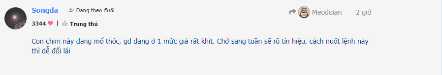 Thực ra con chim to như này nó bay thì chờ xác nhận rồi bắt cũng ko tệ, anh nhỉ. Chứ nếu ôm từ hôm cắm đầu đến lúc chờ bay, thì chi phí cơ hội nhiều hơn cái khoản lỗ được bù lại vào ngày cháu bay